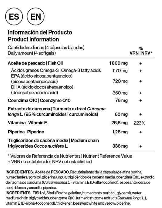 En la vida diaria, nuestra salud cardiovascular y cerebral se ve constantemente desafiada. Omega Gen V, formulado por expertos, combina vitaminas y minerales esenciales para potenciar los efectos de la vitamina E y los omega-3, respaldando así tu salud cardíaca y cerebral. Nuestras cápsulas, diseñadas para lograr una óptima biodisponibilidad, no contienen gluten, ni conservantes, son fáciles de tragar y no dejan sabor a pescado.